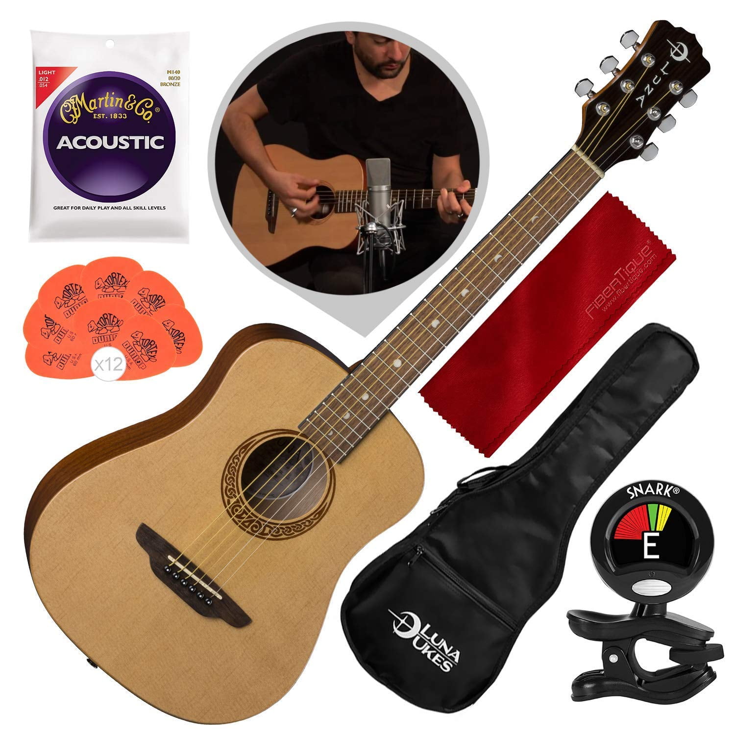 Luna Safari Series Muse Spruce 3 4 Size Travel Acoustic Guitar With Guitar Care Kit Basic Bundle Walmart Com Walmart Com